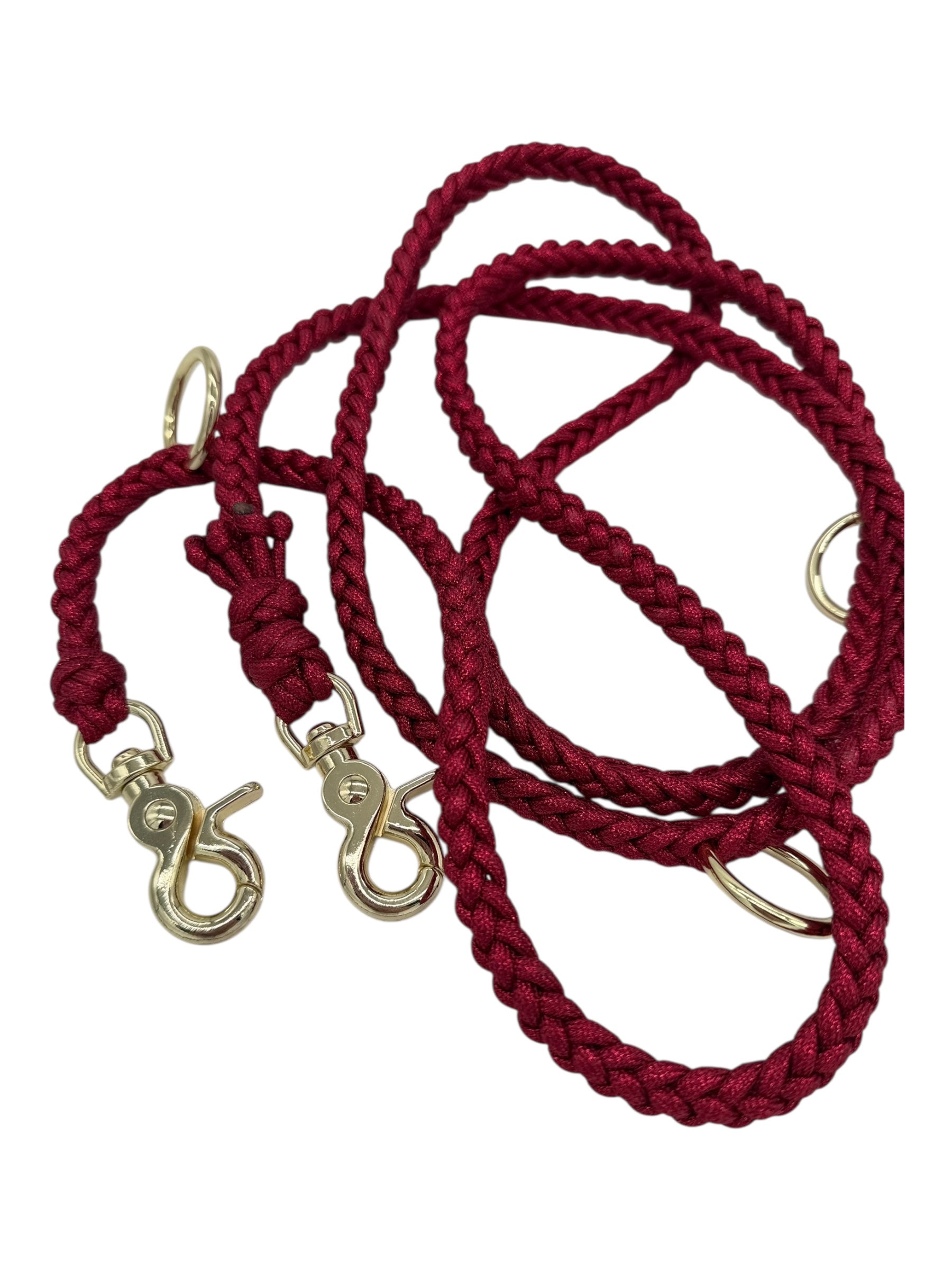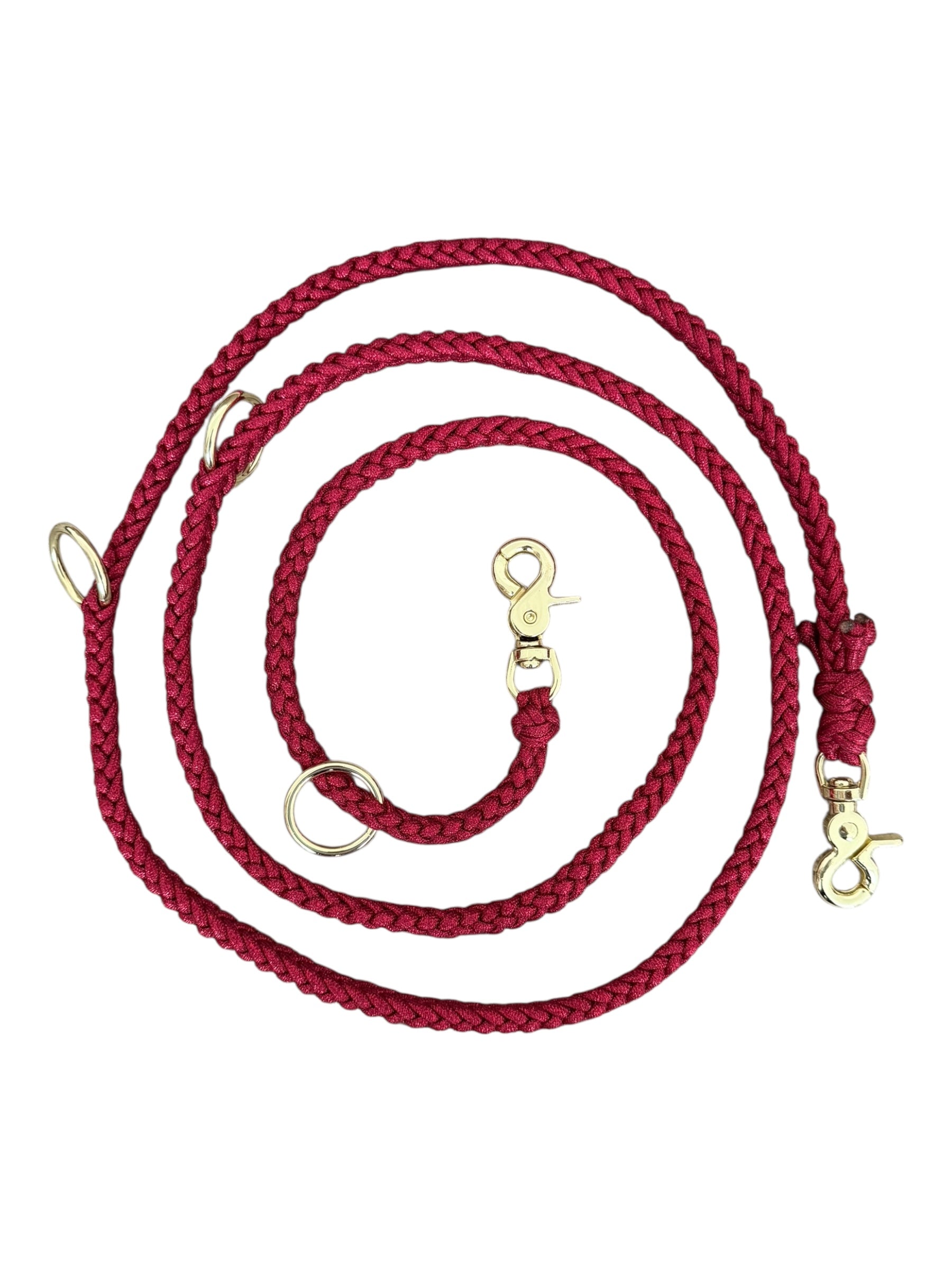 Unsere NALA Leine der The Christmas Collection besteht aus einem wunderschönen rot glitzerndem Paracord - einem besonders robusten Material. Die Hardware ist gold.